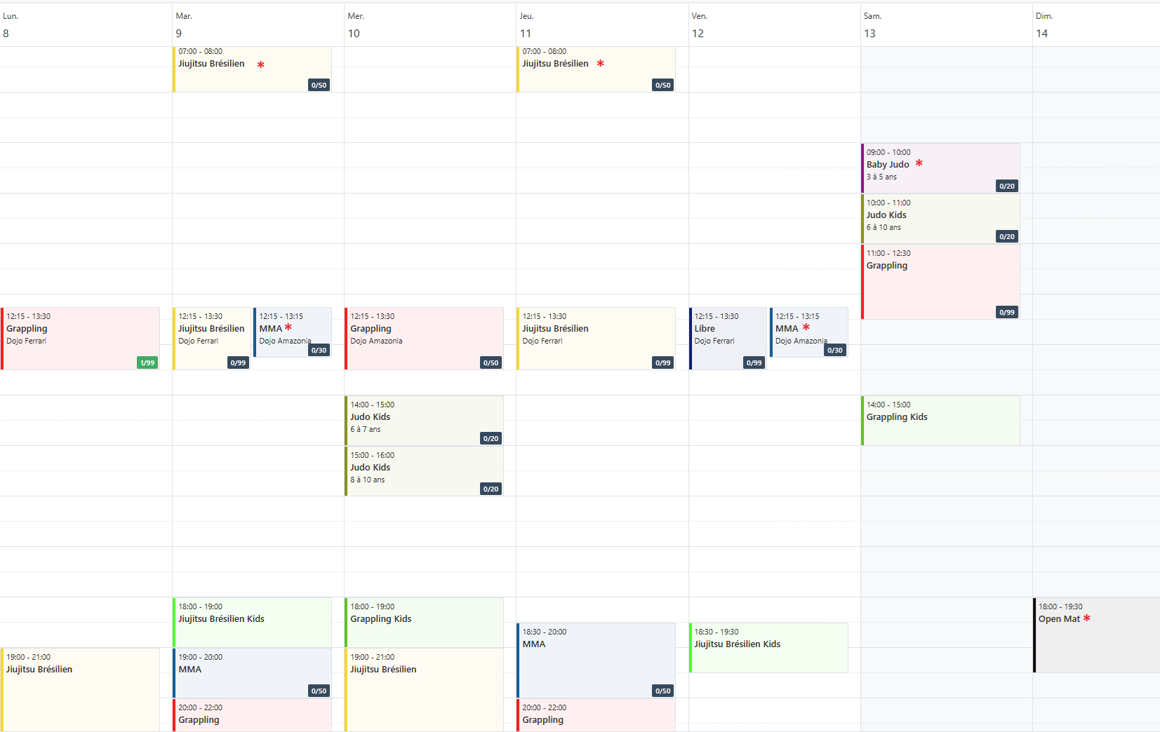 Il est possible d'y avoir des modifications suivant l'affluence des cours et des événements de notre calendrier.